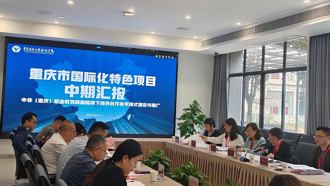 4月14日,来自西南大学、西南医科大学、重庆市教育评估院、重庆医药高等专科学校、重庆永和会计师事务所等单位的市专家组成员莅临我校,对国际化特色项目进行中期调研评审。我校“中非(重庆)职业教育联盟框架下境外合作办学模式建设与推广”项目,是重庆市立项建设的“国际化特色项目”之一,涵盖“培养国际化技术技能人才”“建设联盟教学资源库”“设立专项研究课题”“形成职业院校在非实施合作办学指南”“学术文化交流和成果推广”等建设任务,自2021年立项以来已进行2年的建设期。