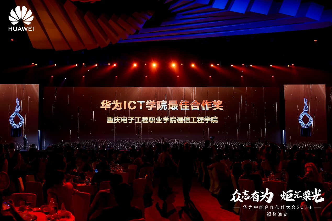 5月9日,重庆电子工程职业学院在华为中国合作伙伴大会2023上荣获“华为ICT学院最佳合作奖”。“华为ICT学院最佳合作奖”是华为提出并授予华为ICT学院的奖项,全国仅有五所职业院校获得此项殊荣,分别是重庆电子工程职业学院、深圳信息职业技术学院、深圳职业技术学院、广东轻工职业技术学院、南宁职业技术学院。