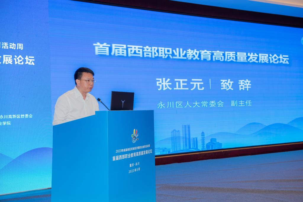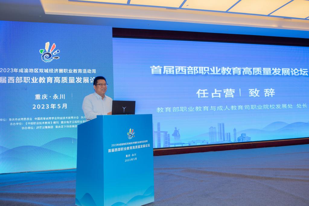 2023年5月11日,由重庆市教育委员会、中国高等教育学会职业技术教育分会、永川高新区管委会主办,《中国职业技术教育》期刊、重庆电子工程职业学院承办,超星泛雅集团、重庆足下科技集团协办的“首届西部职业教育高质量发展论坛”,作为2023年成渝地区双城经济圈职业教育活动周系列活动之一在重庆永川举行。