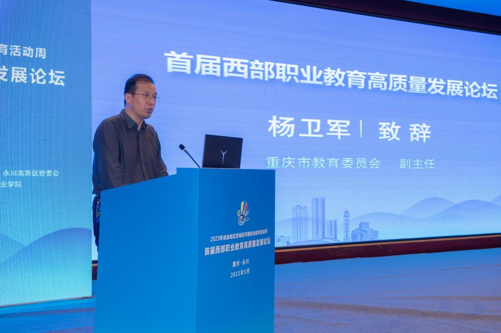杨卫军在致辞中提出,希望通过本次高水平的论坛,促进职业教育信息互通、资源共建和成果共享,推动西部职业教育内涵发展。