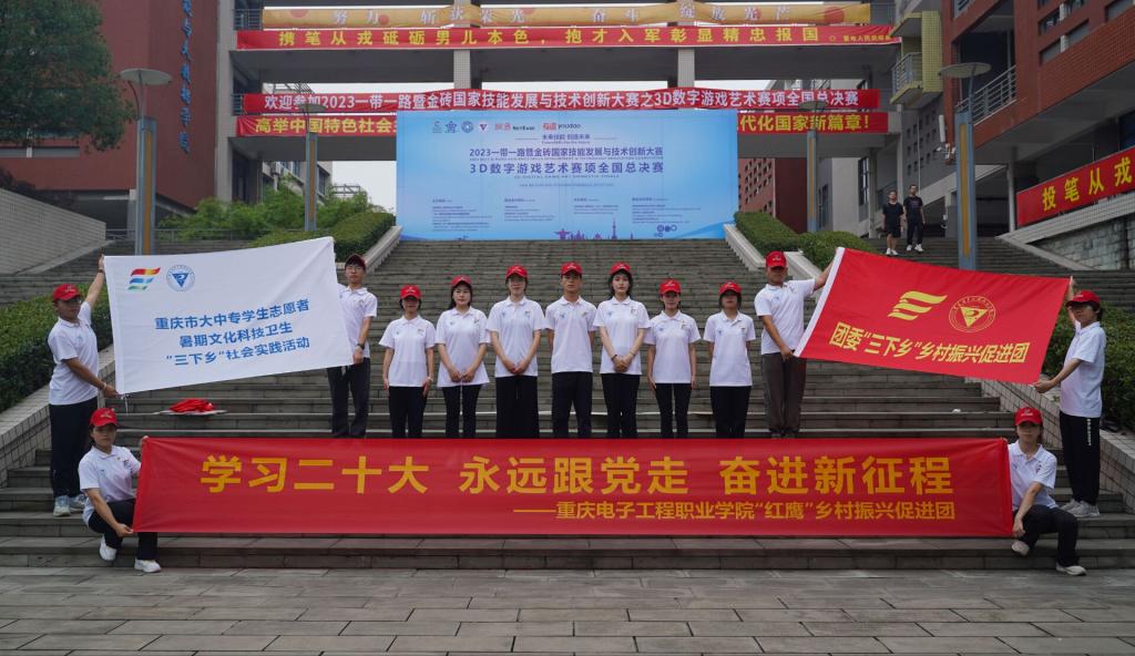 为深入学习宣传贯彻习近平新时代中国特色社会主义思想和党的二十大精神,深入贯彻落实市委六届二次全会精神,切实发挥共青团作为广大青年在实践中学习中国特色社会主义和共产主义的学校作用,引导和帮助广大青年学生在与现实相结合的“大思政课”中“受教育、长才干、作贡献”,引领青年大学生立志做有理想、敢担当、能吃苦、肯奋斗的新时代好青年。2023年7月3日,重庆电子工程职业学院“红鹰”乡村振兴促进团和“桑梓”文明新风践行团分别前往重庆市石柱县南宾街道河坝村和重庆市巫山县官渡镇杨林村开展暑期“三下乡”社会实践活动。