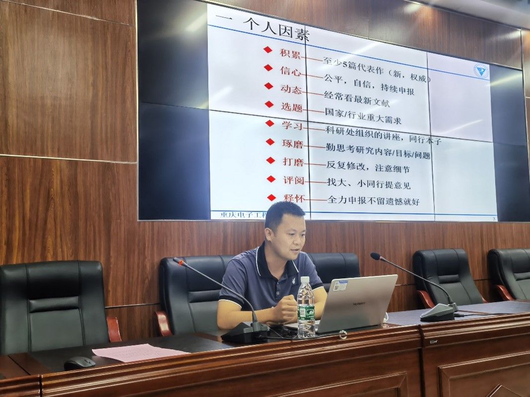 首先,重庆科技学院易军教授以“国家自然科学基金项目申报”为主题做了讲座,从基金项目简介、申报书的撰写思路及规范、撰写常见问题及优秀范例等方面详细介绍了国家自然科学基金项目的申报技巧。