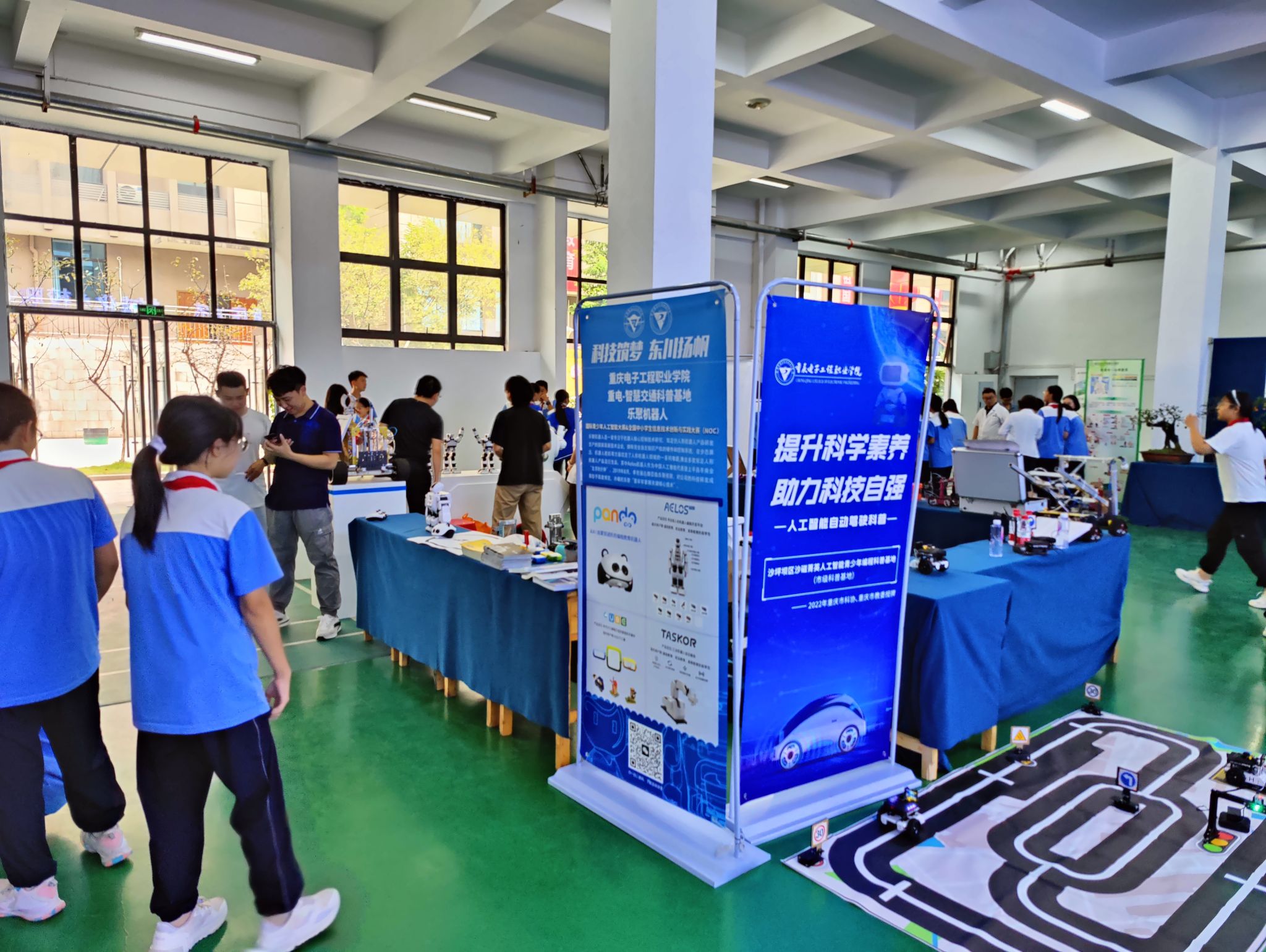 9月18日上午,2023年永川区全国科普日活动启动仪式在凤凰湖中学举行,启动仪式在简单热烈的氛围中拉开序幕。重庆市科协党组成员、副主席谭明星,重庆市科协科技服务中心党总支书记、主任郑吉安,永川区委副书记蔡焘,永川区委常委、区政府副区长、永川高新区党工委书记宋文,永川区人大常委会副主任孔萍,永川区政协副主席漆远英,学校党委委员、副校长黄爱明等出席启动仪式,区级相关部门、校相关二级单位参加。启动仪式上,黄爱明受邀为重庆电子工程职业学院职业启蒙教育基地(永川中学、凤凰湖中学、北山中学、上游小学、兴龙湖小学、红河小学)授牌。智慧健康学院赵鹏举教授向凤凰湖中学师生作了题为《智能机器人发展与青少年科技创新能力培养》的专题职业启蒙科普讲座。