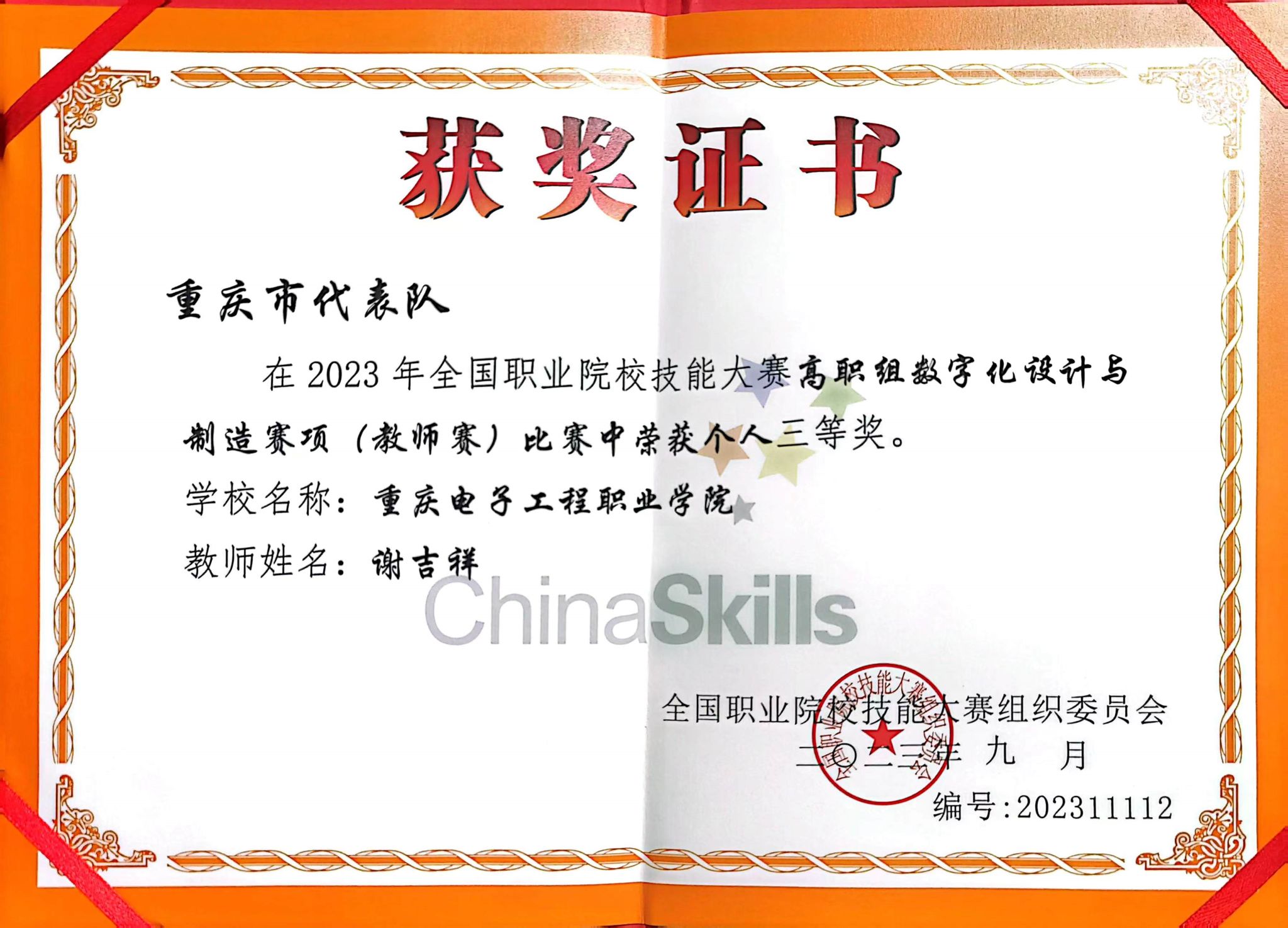 9月22日-25日,2023年全国职业院校技能大赛高职组“数字化设计与制造”赛项(教师赛)在枣庄职业学院举行,来自全国各省、直辖市、自治区的53支代表队参加比赛。我校智能制造与汽车学院张俊峰教授作为领队,教师选手谢吉祥获得全国总决赛三等奖。
