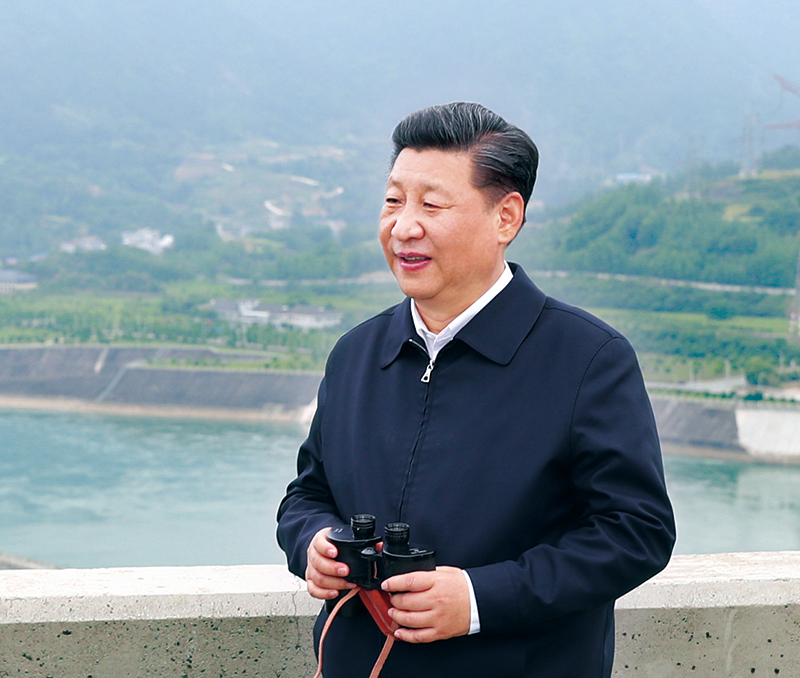 2018年4月26日下午,中共中央总书记、国家主席、中央军委主席习近平在武汉主持召开深入推动长江经济带发展座谈会并发表重要讲话。这是座谈会前,习近平于24日下午在三峡大坝坝顶察看三峡工程和坝区周边生态环境。 新华社记者 谢环驰/摄